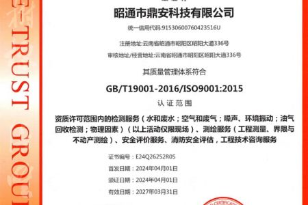 2003年11月10日,昭通市鼎安科技有限公司成立,初始主要從事第三方安全工程技術(shù)服務(wù),經(jīng)多年運(yùn)營,發(fā)展為多專業(yè)綜合科技平臺,為社會提供多種專業(yè)技術(shù)服務(wù)工作。 現(xiàn)公司注冊資金為1200萬元,公司法定代表人:毛衛(wèi)旭。公司主要業(yè)務(wù):安全評價(jià)、安全標(biāo)準(zhǔn)化評審、安全工程技術(shù)服務(wù);環(huán)境監(jiān)測、職業(yè)衛(wèi)生檢測、檢驗(yàn);法律訴訟及非訴訟服務(wù);司法鑒定、固定資產(chǎn)投資項(xiàng)目節(jié)能服務(wù);工程咨詢;工程測量測繪;安全教育培訓(xùn)等。是安全生產(chǎn)服務(wù)、安全教育培訓(xùn)機(jī)構(gòu),也是環(huán)境監(jiān)測和職業(yè)衛(wèi)生服務(wù)機(jī)構(gòu),同時(shí)也是綜合的檢測檢驗(yàn)、綜合科技平臺服務(wù)機(jī)構(gòu)。多年來為公、檢、法、司、軍、警、海關(guān)、仲裁、安監(jiān)、工礦商貿(mào)企業(yè)、社會團(tuán)體及個(gè)人提供多專業(yè)技術(shù)服務(wù)。